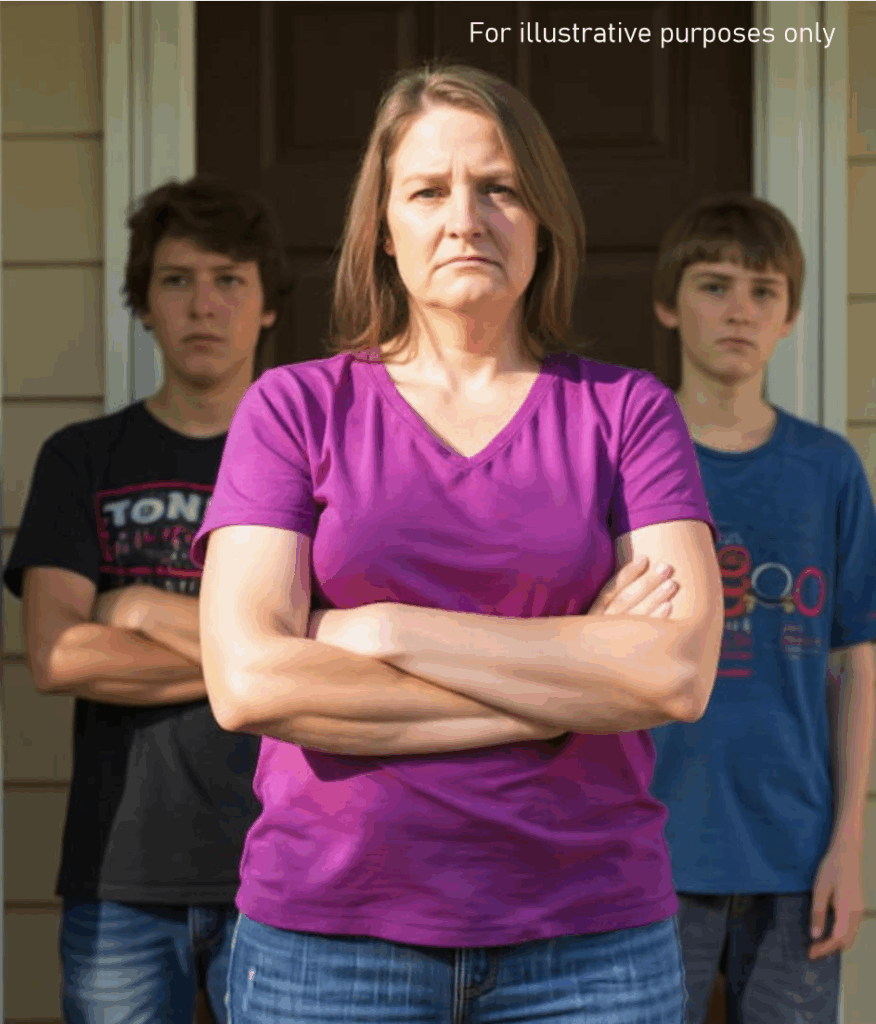 Cynthia looked through the window. Mrs. Davies wore slippers and a travel hoodie, her eyes droopy. Leo shouted behind her, and Chloe cried.