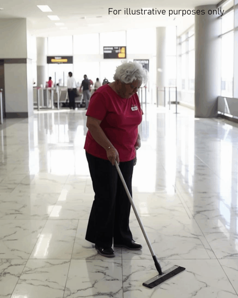 Arnold dodged baggage and other passengers at the terminal. The pretzel vendor diverted him from the restroom signage. Workers typed on computers, families chased youngsters, and personnel moved quickly at the airport. Everyone was busy save the lady dragging a cleaning cart beside the wall, undetected.