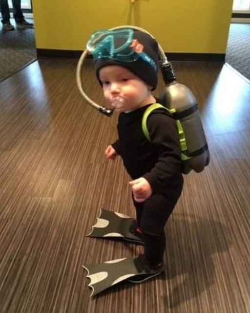 There he was. My 2-year-old. Standing proudly in the middle of the hotel room. Wearing an entire child-sized scuba diving outfit. Flippers, goggles, air tank, snorkel, the whole nine yards. Wobbling like a penguin. Paci still in his mouth.