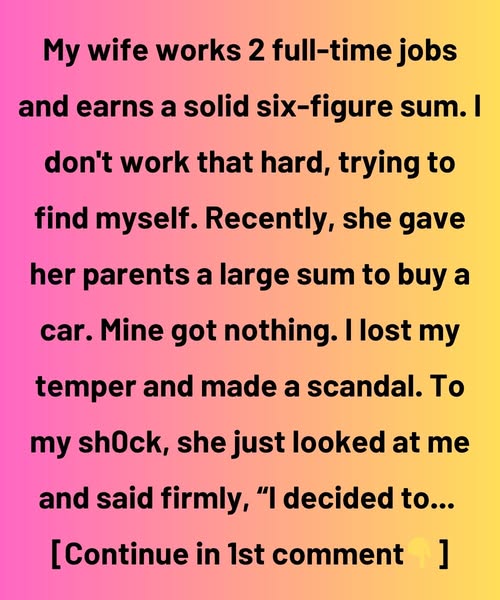 Recently, she transferred a large sum of money to her parents so they could buy a car. When I found out, I felt a strange mix of jealousy and anger bubbling inside me. My parents, who’ve always struggled, hadn’t received a cent from us since we got married. Seeing her parents suddenly rewarded like that felt like a betrayal.