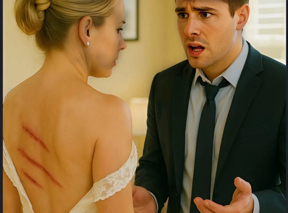 As the fabric slowly slipped, I saw what she had tried to hide. Beneath the lace and carefully aligned buttons, her back bore the deep marks of old injuries. Three scars, clear and dark, stretched from her shoulder blade to her waist. Marks impossible to ignore — silent, but terribly expressive. 😱