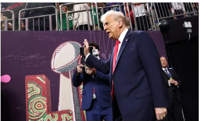 Donald Trump made history on 9 February by becoming the first sitting US president to attend the Super Bowl.