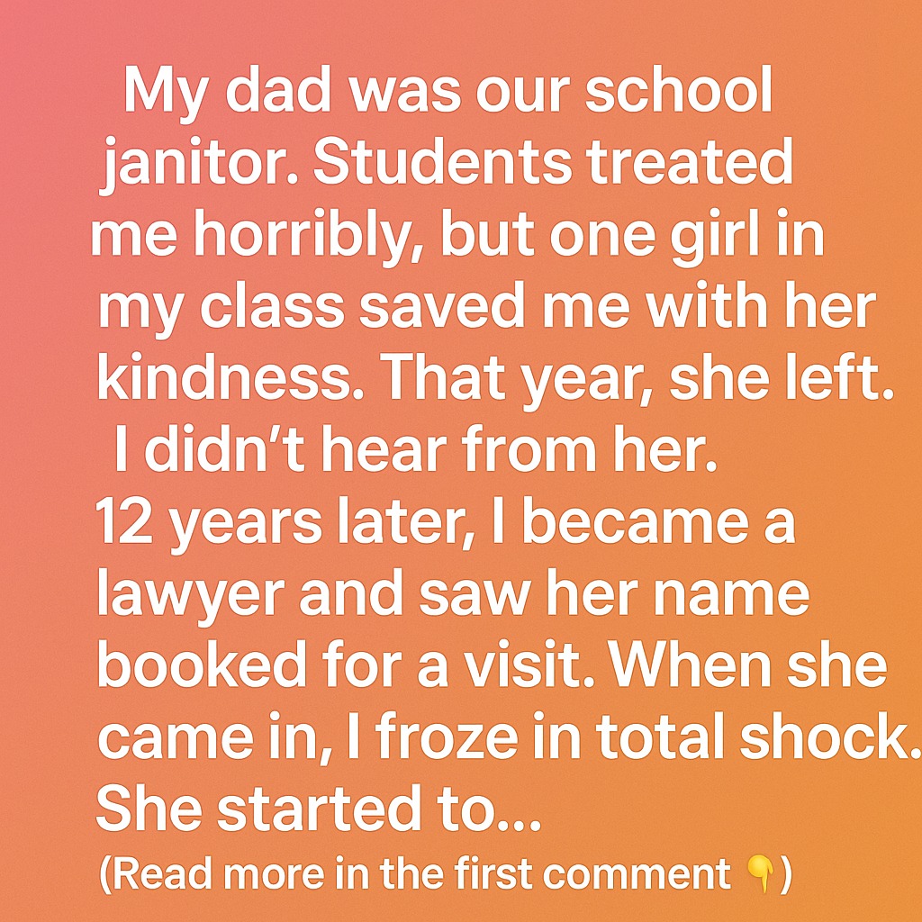 When I was a child, my dad worked as the janitor at my school. Some students didn’t treat me kindly because of it, but there was one girl in my class who always showed me compassion. Her kindness was like a light in difficult times.That same year, she moved away, and I never heard from her again. Life went on, and I carried her kindness with me as a reminder that one caring person can change everything.