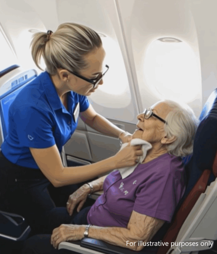 The memory of that flight two years ago was still crystal clear. I was doing my regular checks in business class when I heard the panic in a man’s voice. Three rows ahead, an elderly woman was clutching her throat, her face turning an alarming shade of red.