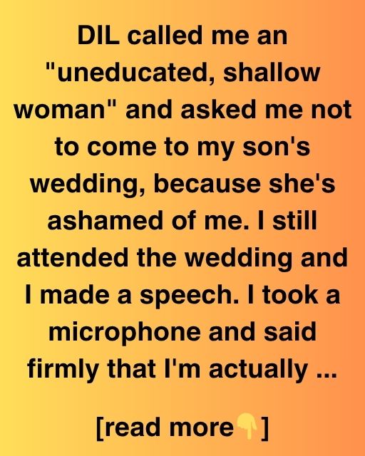 DIL branded me a ‘uneducated, shallow woman’ and urged me not to attend my son’s wedding because she’s ashamed of me. I attended and spoke at the wedding. I said I’m not embarrassed of myself in front of a microphone. I may not have a degree or speak as fancy as some of you in this room, but I raised a man who loved me his whole life—until someone told him I wasn’t good enough.