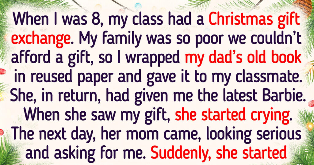 When I was 8, my class had a Christmas gift exchange. My family was so poor we couldn’t afford a gift, so I wrapped one of my dad’s old books in reused gift paper and gave it to my classmate. She, in return, had given me the latest Barbie. When she saw my gift, she started crying.