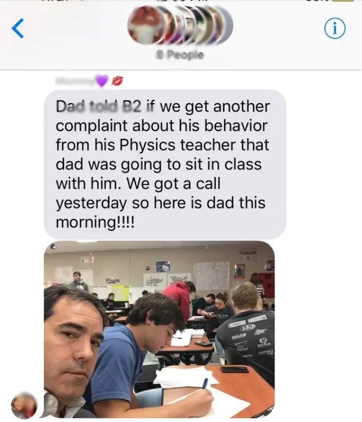 The next day, student Brad walked into his physics class as usual and was horrified to see his father waiting for him at his desk.