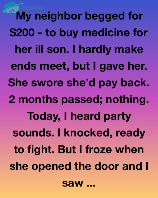 My neighbor begged for $200 — to buy medicine for her ill son. I hardly make ends meet, but I gave her. She swore she’d pay back. Two months passed; nothing. Today, I heard party sounds. I knocked, ready to fight. But I froze when she opened the door and I saw balloons, a cake, and about a dozen kids yelling “Surprise!”