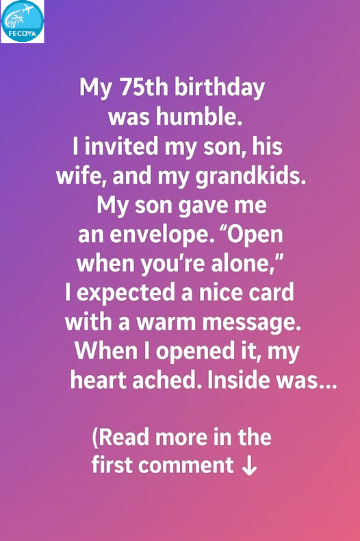 My 75th birthday was humble. I invited my son, his wife, and my grandkids. My son gave me an envelope. “Open when you’re alone,” I expected a nice card with a warm message. When I opened it, my heart ached. Inside was…a formal notice asking me to consider selling my home and moving into a retirement facility. No handwritten note, no personal words — just a printed form and a short typed line: “Dad, this will be best for everyone.” I sat there at my kitchen table, the same one where he once ate cereal before school, feeling a wave of sadness wash over me. It wasn’t anger — just the deep loneliness that comes when you realize the world sees you as old before you do.