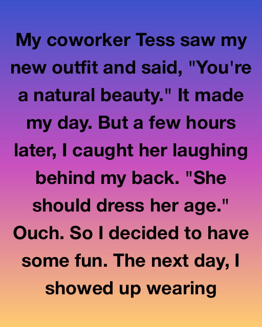 The immediate reaction was even better than I had hoped. Tess and Rhonda stopped talking the moment I entered the office, their jaws dropping in unison. The silence followed me all the way to my desk. I sat down, working diligently, completely ignoring the confused stares and muffled giggles from across the office. I was giving them exactly what they asked for—dressing nothing like “my age”—and I was enjoying the feeling of taking back control.