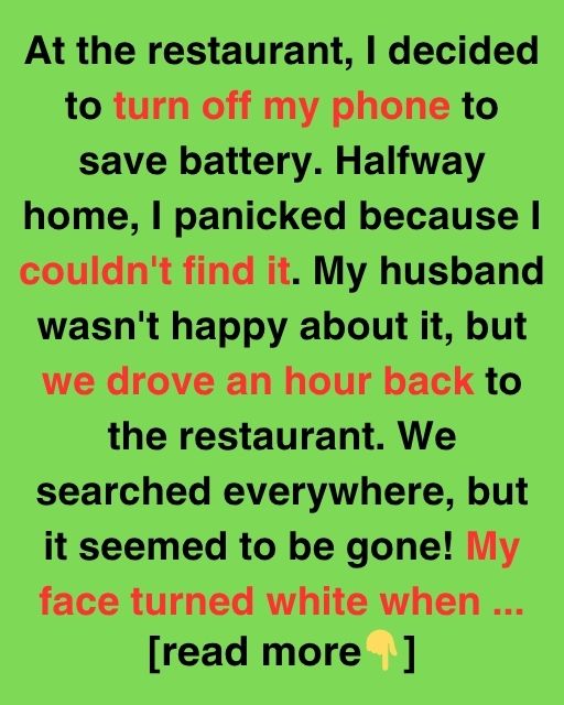 At the restaurant, I turned off my phone to preserve power. I panicked halfway home when I lost it. Although my spouse was unhappy, we drove an hour back to the restaurant.