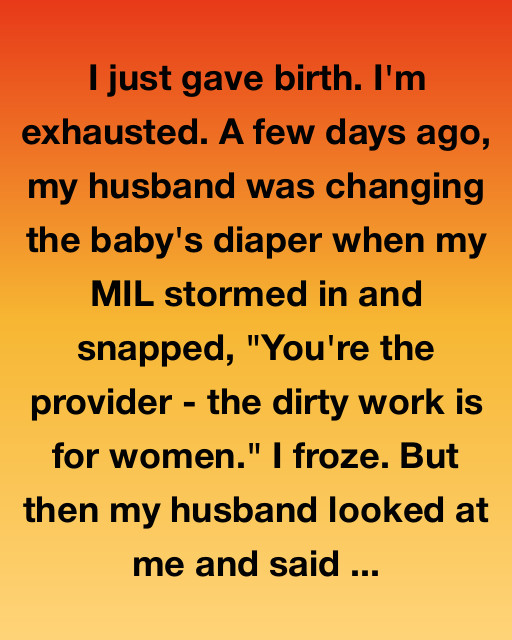 I just gave birth. I’m exhausted. A few days ago, my husband was changing the baby’s diaper when my MIL stormed in and snapped, ‘You’re the provider – the dirty work is for women.’ I froze. But then my husband looked at me and said, ‘Actually, Mom, I’m the father – and this is my job too.’