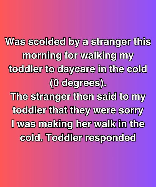 The stranger then said to my toddler that they were sorry I was making her walk in the cold.