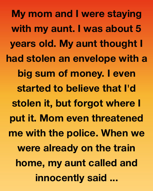 My mom and I were staying with my aunt. I was about 5 years old. My aunt thought I had stolen an envelope with a big sum of money. I even started to believe that I’d stolen it, but forgot where I put it. Mom even threatened me with the police.