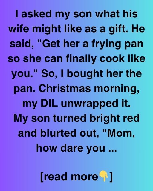 I asked my son what his wife would like for a gift. He said, “Get her a frying pan so she can finally cook like you.” I bought her a pan. Christmas morning, my DIL unwrapped it. My kid flushed red and shouted, “Mom, how dare you.”