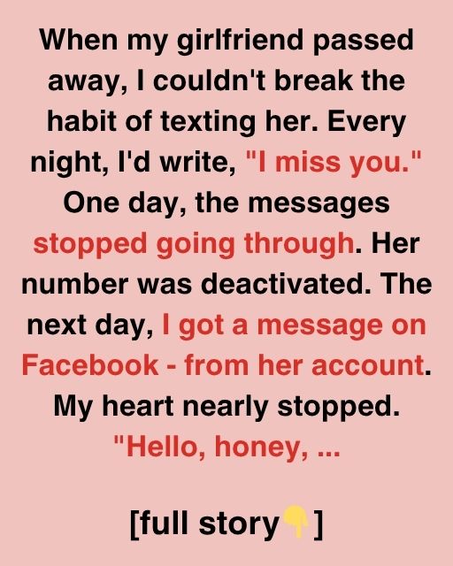 After my girlfriend died, I kept contacting her. Every night, I wrote “I miss you.” Someday, communications stopped sending. Her number was disconnected. She sent me a Facebook message the next day. My heart nearly stopped. “Hi, honey,” it read.