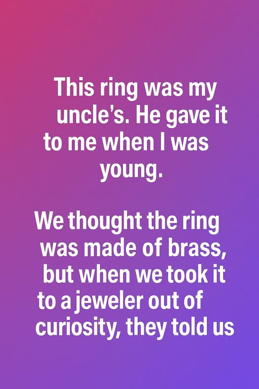 When I was a child, my uncle gave me a small ring. It looked simple, a little worn, and slightly dull, but he told me to keep it safe because one day it would mean something special. I didn’t think much of it back then — to me, it was just a piece of jewelry that reminded me of him. Over the years, I wore it occasionally, then tucked it away in a small box. Life moved on, and so did I.