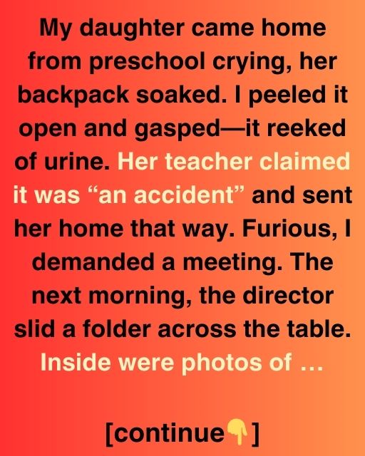 My tearful kid brought her soaking backpack home from preschool. I gasped when I opened it—it smelled like urine. Her teacher called it “an accident” and sent her home.