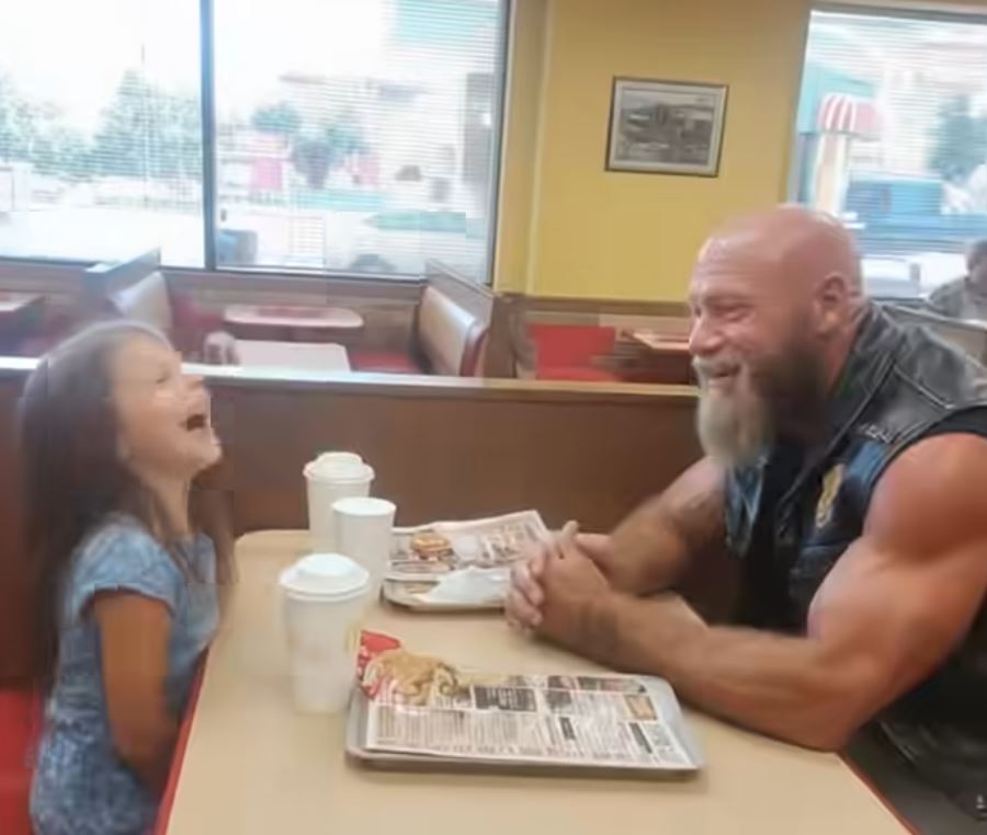 Each Saturday, the biker ordered two Happy Meals and sat alone in the same booth by the window. Minutes later, a young girl—no older than seven—would walk in and join him. The two of them laughed and chatted like old friends, sharing meals in a way that didn’t quite fit the picture most people had in their heads. To outsiders, the sight raised countless questions: Who was she? Where were her parents? And why was this frightening man meeting with her in secret?