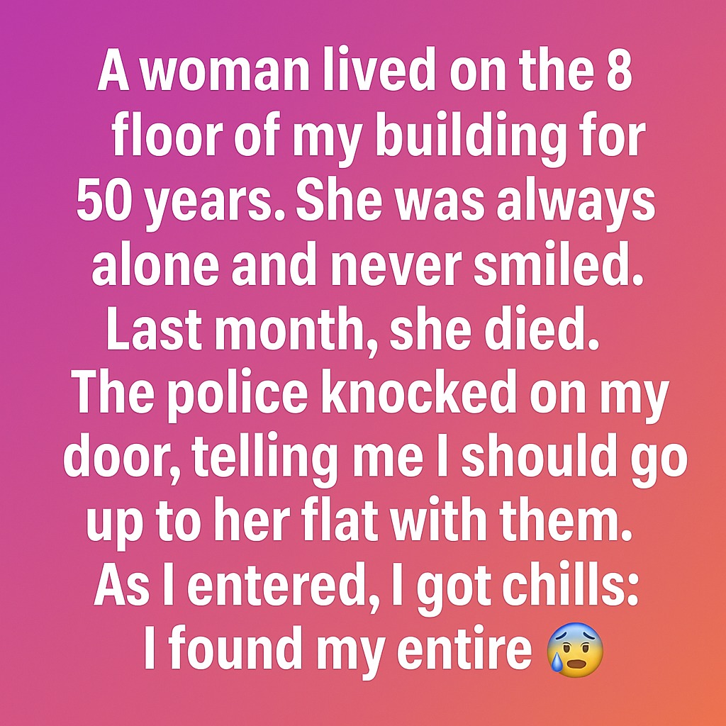 For as long as I could remember, a woman lived on the 8th floor of my building. She had been there for fifty years, always alone, always quiet, and never smiling. Most neighbors barely noticed her, and those who did whispered about her solitude.Last month, she passed away.