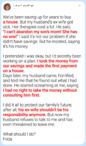 She called me and started yelling the moment I answered. “You’re trying to make me look bad online?! I told you I thought it was a gift! Why would you post that?!”