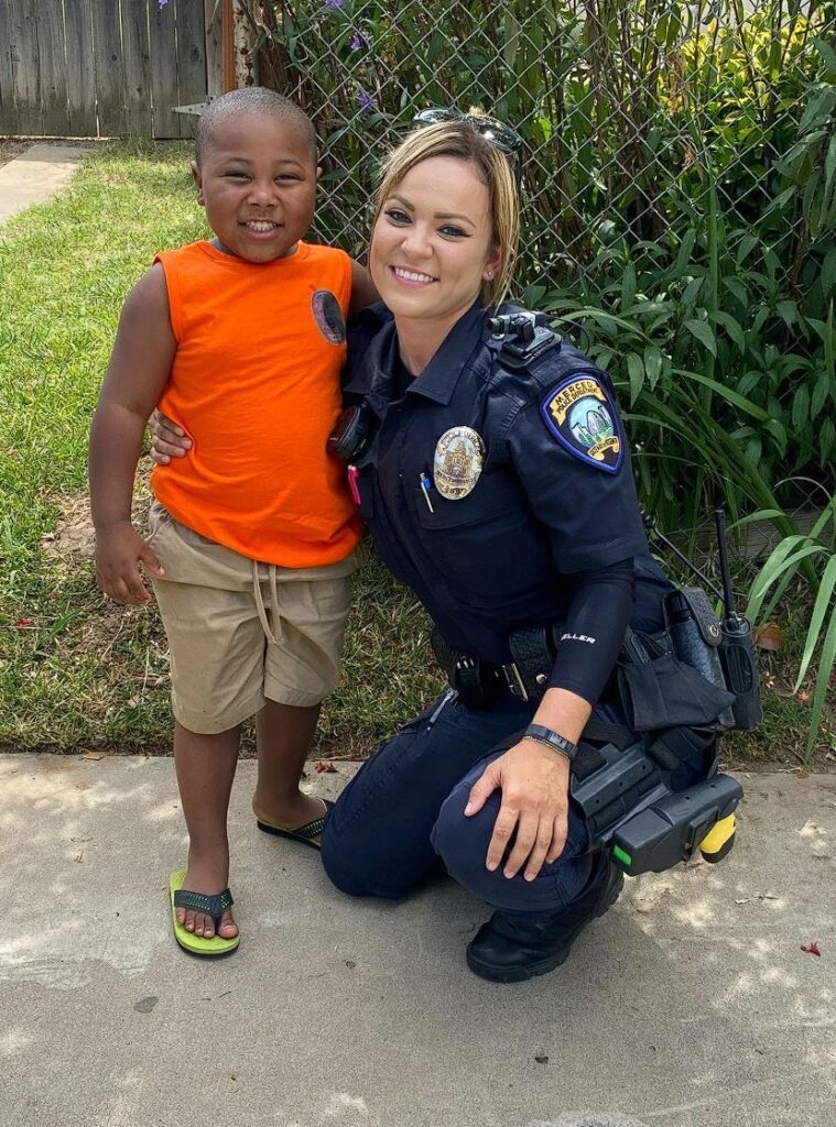 Officer Barnes spoke. “We don’t encourage people to take matters into their own hands, especially kids,” she said Isaiah softly. “But we can’t deny you helped us today big time.”