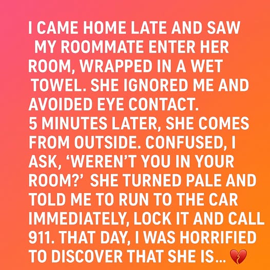 One evening, I came home later than usual, tired from a long day. As I walked down the hallway, I noticed my roommate quickly slipping into her room, wrapped in a towel. She didn’t look at me or say anything, which was unusual for her. Something about it felt strange, but I told myself I was just imagining things.