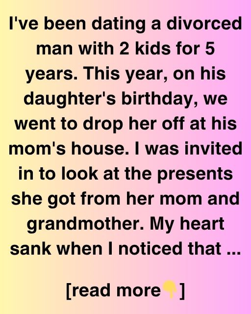 I’ve dated a divorced father of two for five years. This year, we dropped off his kid at his mom’s place for her birthday. I was invited to see her mother and grandmother’s gifts. The fact that one of the gifts—a pink-cased painting set—was one I had bought and wrapped a week earlier broke my heart.