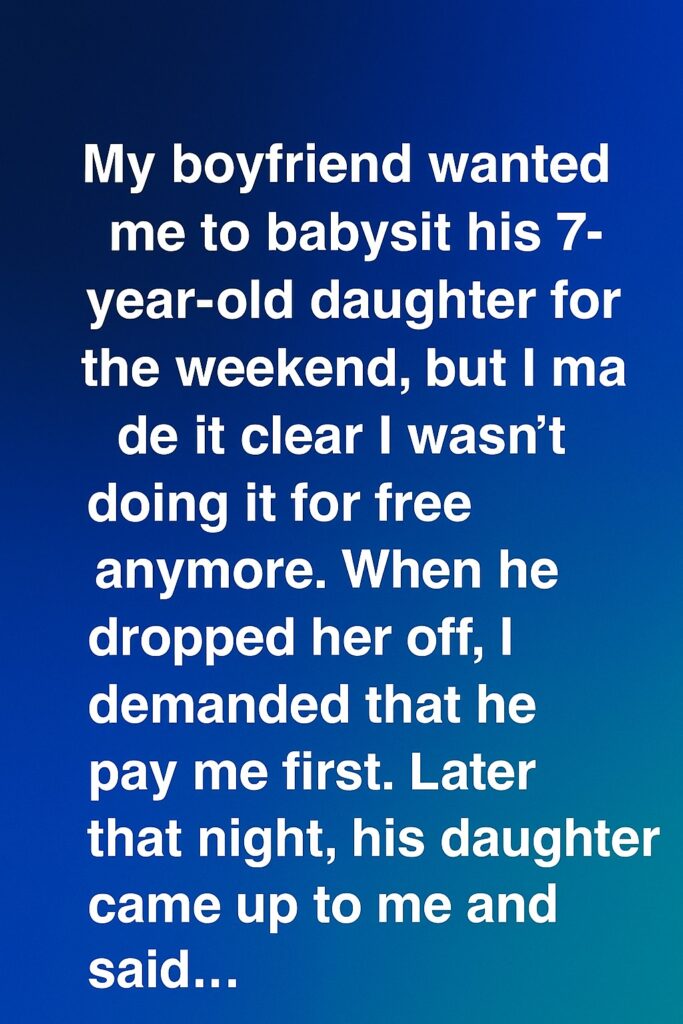 When my boyfriend asked me to babysit his 7-year-old daughter for the weekend, I hesitated. I had looked after her many times before, and while I cared about her deeply, it was beginning to feel less like occasional help and more like an ongoing responsibility. After thinking it over, I decided to be honest. I told him that if he wanted me to keep doing it regularly, I couldn’t do it for free anymore.