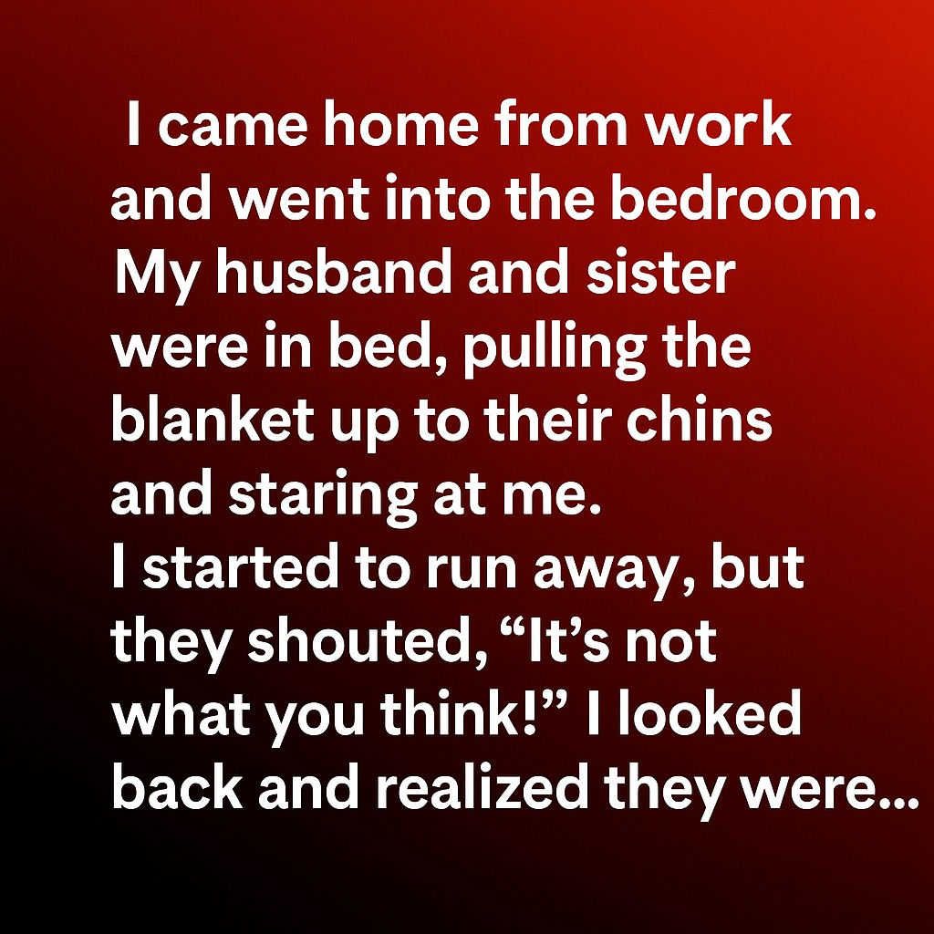 I came home late from work one evening, exhausted and ready to collapse into bed. As I walked into the bedroom, I froze. My husband and my sister were under the covers together, the blanket pulled up tight to their chins. Their eyes went wide when they saw me.My stomach dropped. A rush of heat filled my chest, and I spun around, ready to bolt. Before I could take another step, they both shouted, almost in unison, “It’s not what you think!”