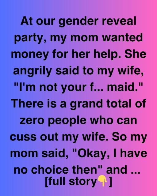 At our gender reveal celebration, my mom requested payment for her assistance. She angrily told my wife, “I’m not your f… maid.” There are no persons who can curse my wife. My mother screamed, “Okay, I have no choice then” and rushed out, slamming the door. Everyone at the party went silent, like life paused.