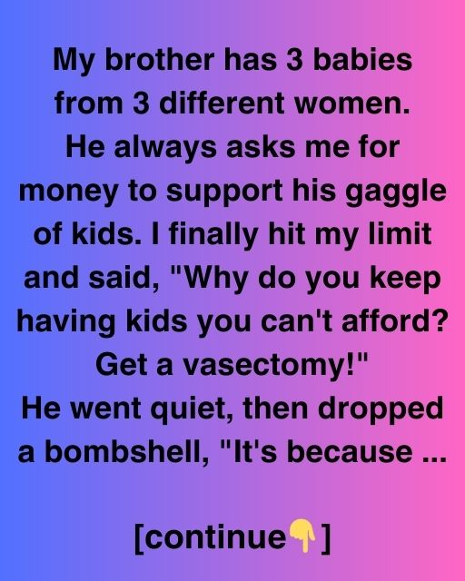 My brother has 3 children from 3 women. Always requests for money to support his multiple children. I finally asked, “Why do you keep having kids you can’t afford?” Get vasectomy! After a pause, he revealed, ‘I want to feel needed.’