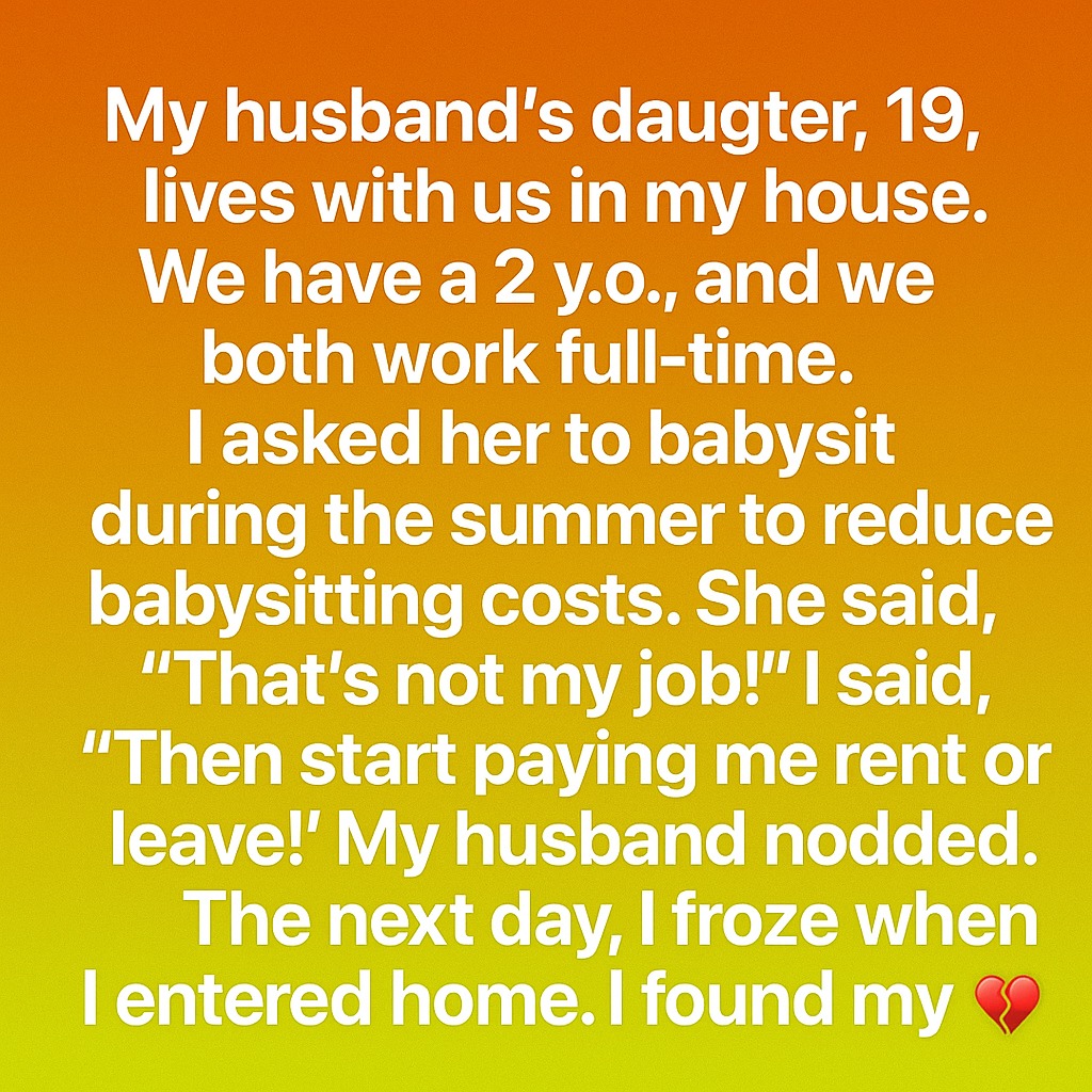 My husband’s 19-year-old daughter was living with us, and since my husband and I both work full-time, I asked if she could help babysit during the summer. She told me it wasn’t her responsibility. I reminded her that living in a home also means contributing in some way—either through helping or through shared costs.