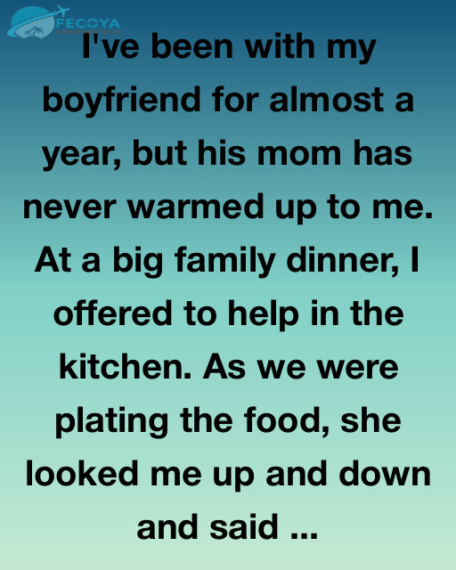 I’ve been with my boyfriend for almost a year, but his mom has never warmed up to me. At a big family dinner, I offered to help in the kitchen. As we were plating the food, she looked me up and down and said, “Well, at least you try to be helpful. Some girls just come to eat.”